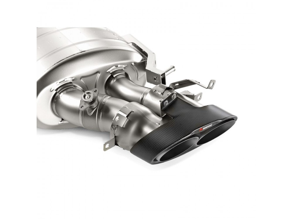Es besteht vollständig aus einer von Akrapovič patentierten Titanlegierung, die eine erhebliche Gewichtsreduzierung ermöglicht. Das System endet mit karbonfaserverstärkten Endrohren, die im hinteren Stoßfänger montiert sind. Für die Montage dieses Auspuffs sind keine Modifikationen erforderlich, er passt perfekt zum Fahrzeug. Die Endschalldämpfer sind mit Klappen ausgestattet, die eine Geräuschregelung über das Bordcomputer-System ermöglichen. Alle Auspuffanlagen von Akrapovič stehen für höchste Qualität der verwendeten Materialien und Verarbeitung.