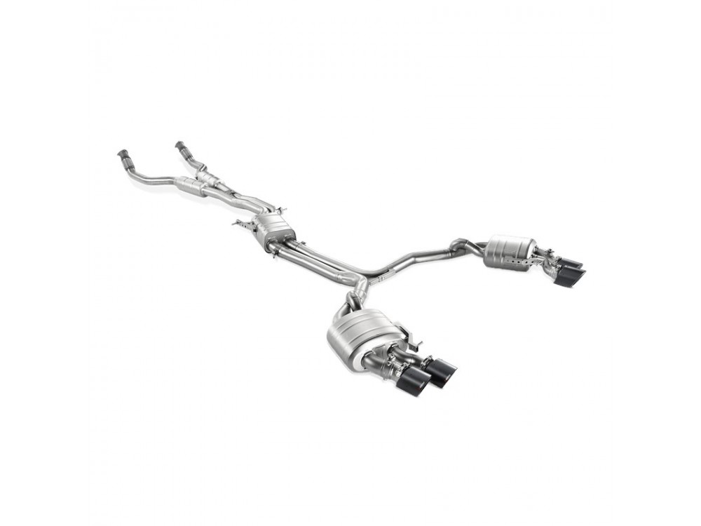 Es besteht vollständig aus einer von Akrapovič patentierten Titanlegierung, die eine erhebliche Gewichtsreduzierung ermöglicht. Das System endet mit karbonfaserverstärkten Endrohren. Für die Montage dieses Auspuffs sind keine Modifikationen erforderlich, er ist perfekt auf das Fahrzeug abgestimmt. Die Endschalldämpfer sind mit Klappen ausgestattet, die eine Regelung des Sounds über das Bordcomputer-System ermöglichen. Alle Auspuffanlagen von Akrapovič stehen für höchste Qualität der verwendeten Materialien und Verarbeitung.