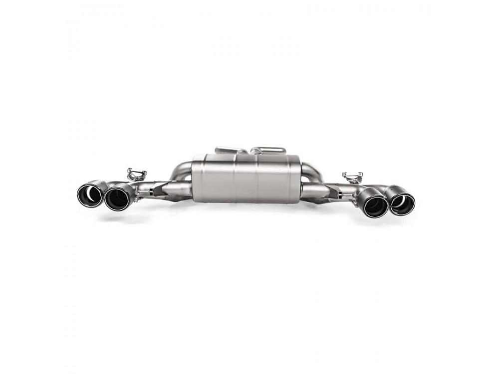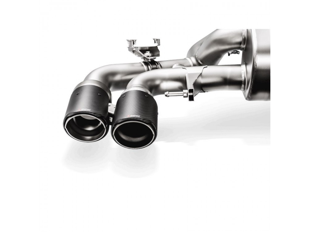 Es besteht aus einer von Akrapovič patentierten Titanlegierung, die eine erhebliche Gewichtsreduktion ermöglicht. Das System endet mit karbonfaserverstärkten Endrohren. Für die Montage dieses Auspuffs sind keine Modifikationen erforderlich, er passt perfekt zum Fahrzeug. Optional kann das System mit einem Sound Kit-Modul erweitert werden, das die Steuerung der Drosselklappe und die Regulierung des Auspuffklangs ermöglicht. Als Ergänzung zu den Modifikationen sind auch ein Diffusor und Spiegelabdeckungen aus demselben Kohlefaser-Material wie die Endrohre erhältlich.