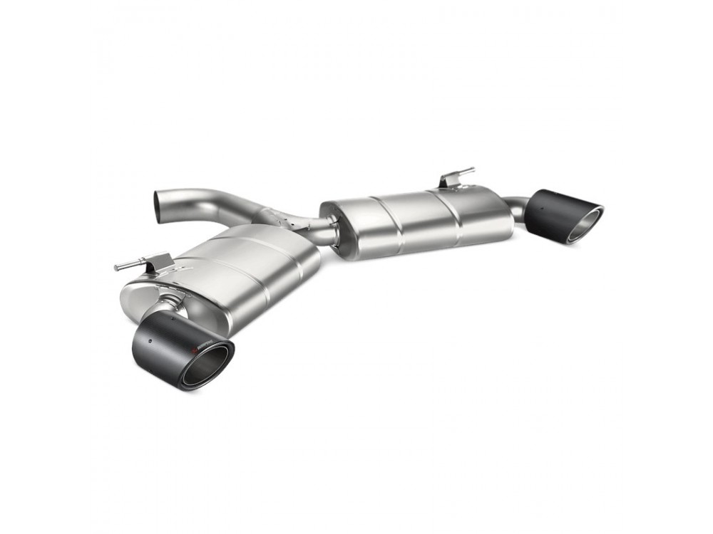 Es besteht vollständig aus einer von Akrapovič patentierten Titanlegierung, die eine erhebliche Gewichtsreduktion ermöglicht. Das System endet mit karbonfaserverstärkten Endrohren. Für die Montage dieses Auspuffs sind keine Modifikationen erforderlich, er ist perfekt an das Fahrzeug angepasst. Es stehen zwei Varianten des Endschalldämpfers zur Auswahl: Standard und Race. Das Produkt verfügt über ein EC-Zertifikat (in der Standardversion). Als Ergänzung zur Modifikation ist auch ein Diffusor erhältlich, der aus demselben Kohlefaser-Material wie die Endrohre gefertigt ist.