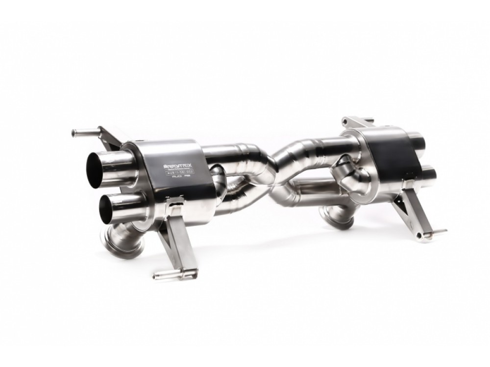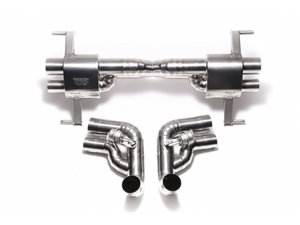 Es besteht vollständig aus einer sehr leichten und robusten Titanlegierung. Für die Montage dieses Systems sind keine Modifikationen erforderlich, es passt perfekt zum Fahrzeug. Im Basismodell verwendet das System die serienmäßigen Endrohre im hinteren Stoßfänger. Optional können Titan- oder mattschwarze Endrohre bestellt werden.