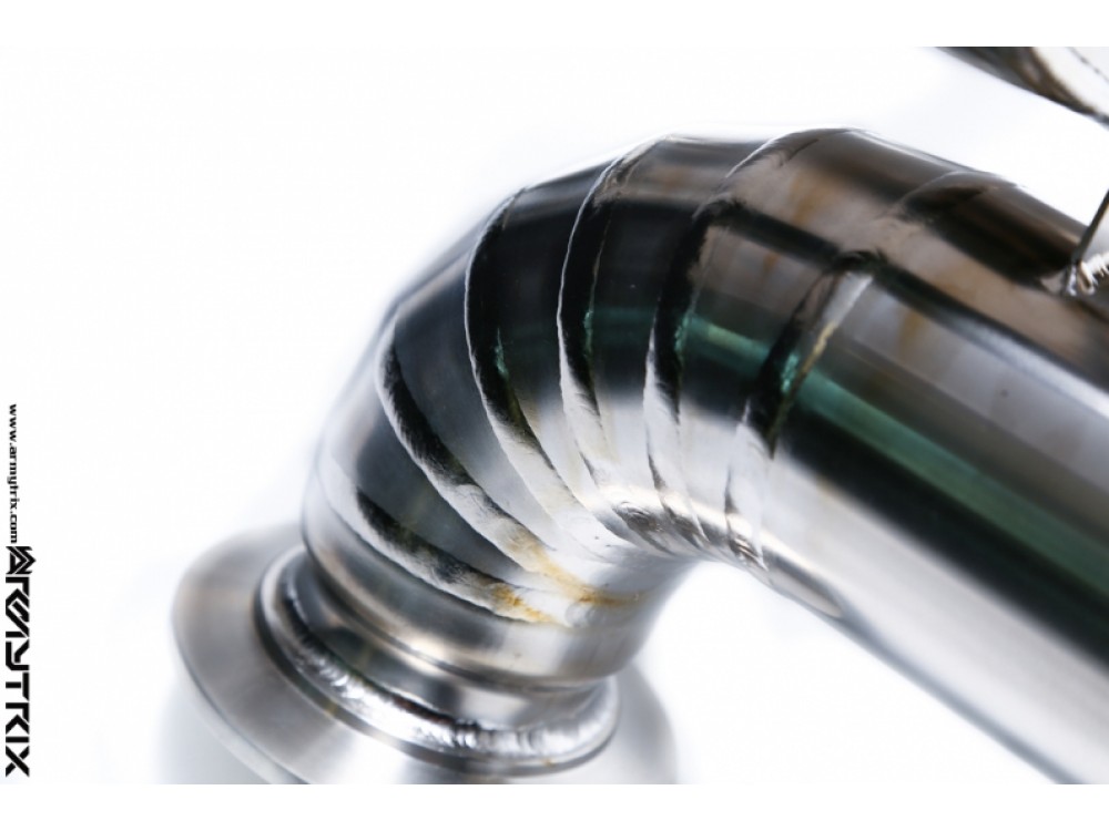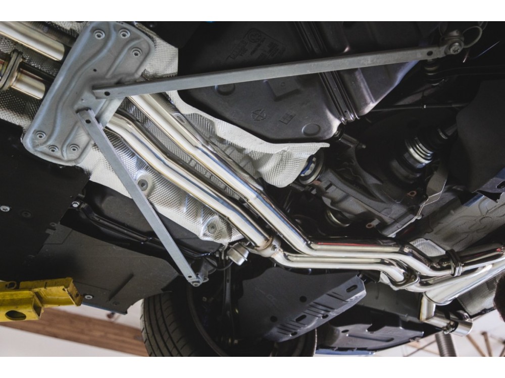 Die gesamte Anlage besteht aus rostfreiem Stahl der Legierung T304. Die Anlage endet mit einzelnen, polierten Endrohren, optional auch mit mattschwarzen oder blauen Titan-Stilen. Für die Montage dieser Anlage sind keine Modifikationen erforderlich, sie passt perfekt zum Fahrzeug. Optional kann der Auspuff mit einem hochdurchlässigen Downpipe de-cat oder doppelten Endrohren erweitert werden.