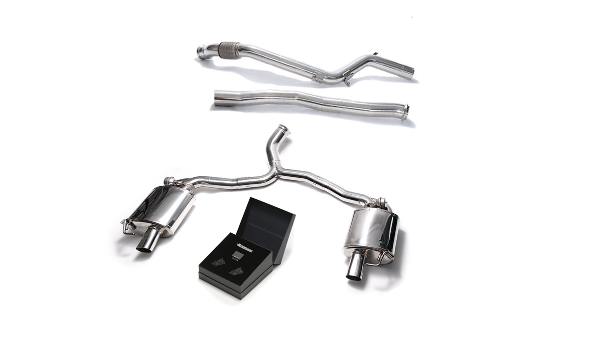 Alle Auspuffanlagen von Armytrix sind mit einem System von fernsteuerbaren Klappen ausgestattet, das die Regelung des Sounds über eine drahtlose Fernbedienung oder eine Smartphone-App ermöglicht.