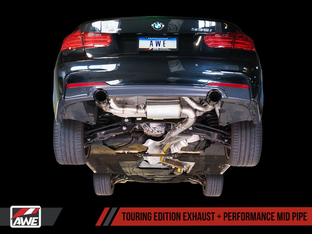 Sportauspuffanlage von AWE Tuning, die für BMW F30 335I 3.0L Turbo entwickelt wurde.