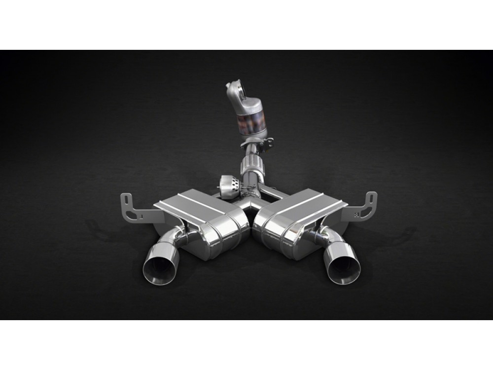 Die gesamte Anlage ist aus poliertem Edelstahl der Bezeichnung T309 gefertigt. Die Anlage endet mit vier polierten Endrohren. Im Lieferumfang des Auspuffs ist ein neuer Heckstoßstangendiffusor aus Carbon enthalten. Der Einbau der Auspuffanlage erfordert keine zusätzlichen Modifikationen.