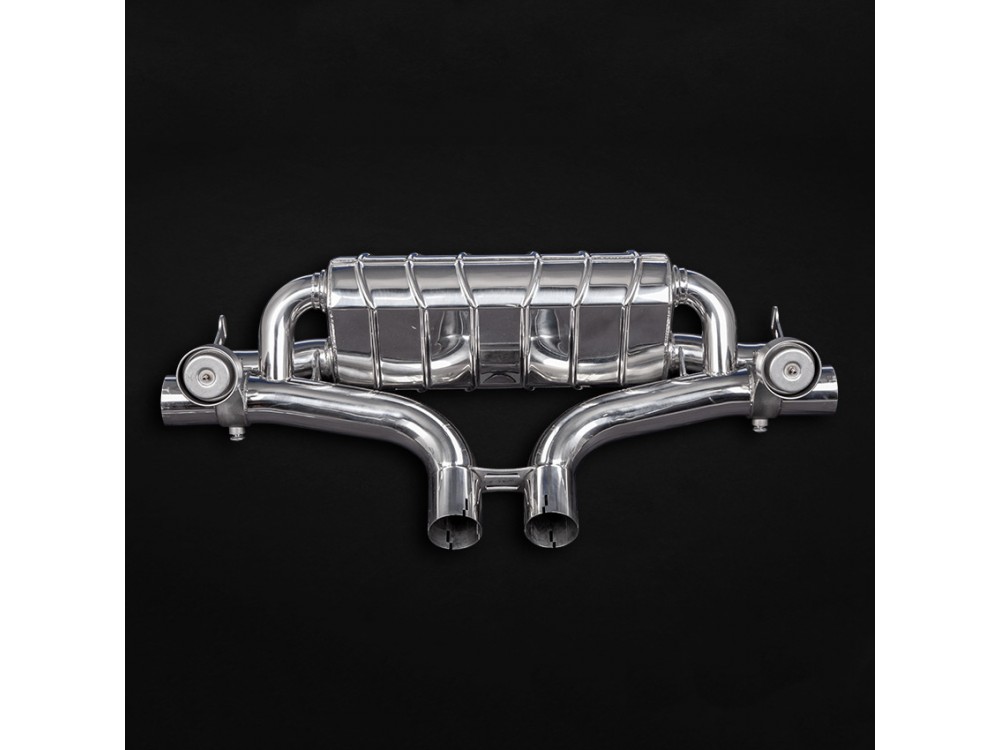 Die Anlage ist mit vakuumgesteuerten Klappen ausgestattet, die eine Klangregulierung ermöglichen. Die Anlage verwendet die serienmäßigen Endrohre. Optional kann ein sportlicher Downpipe erworben werden.