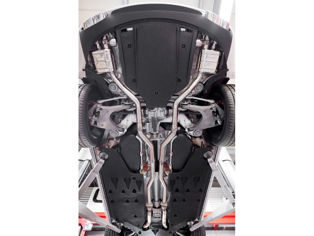Die gesamte Anlage besteht aus poliertem Edelstahl. Das System verwendet die serienmäßigen Endrohre.
