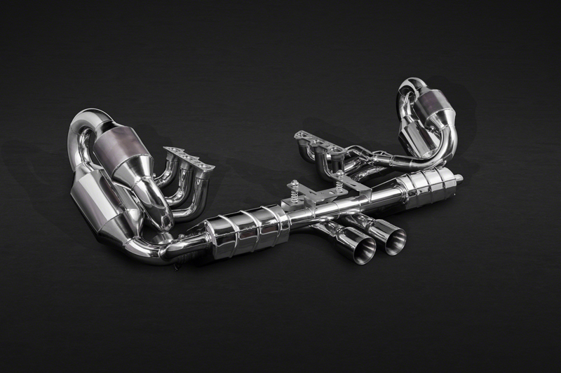 Sportauspuffanlage der Firma Capristo, die für Porsche 991.1 GT3/GT3 RS entwickelt wurde.