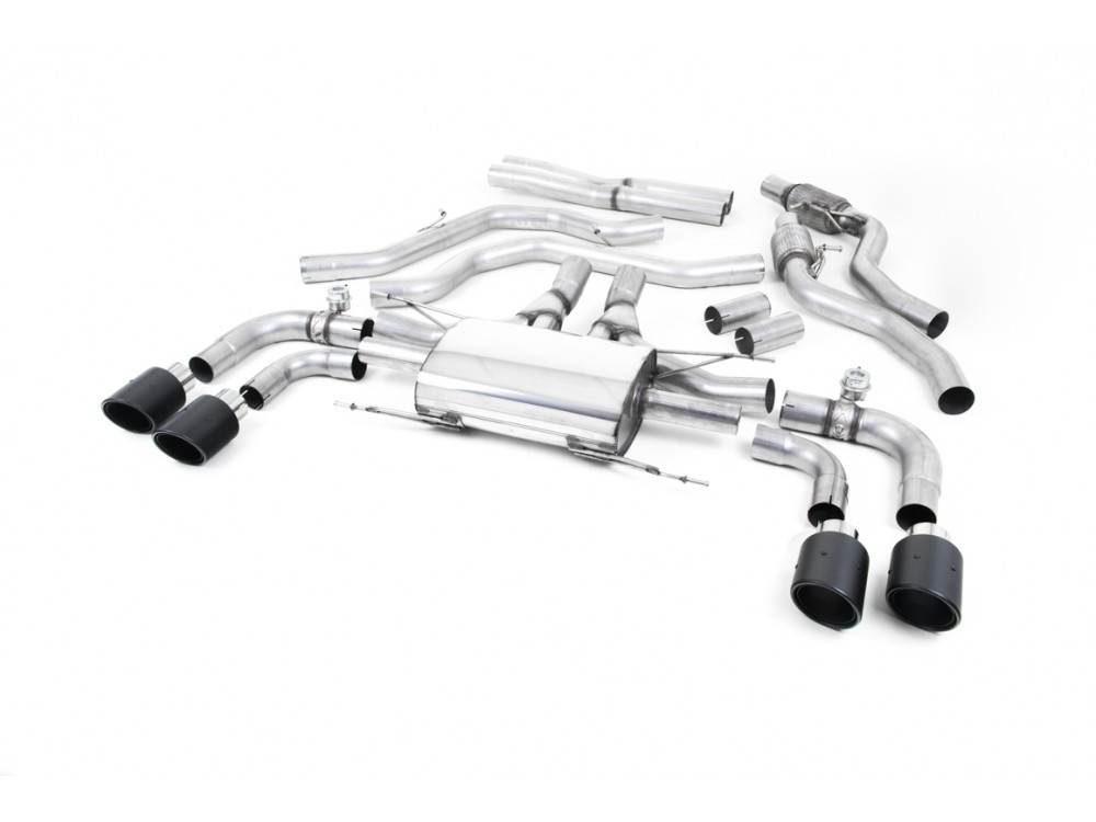 Sportauspuffanlage vom Typ Cat-back der Firma Milltek Sport, die für Alfa Romeo Giulia Quadrifoglio 2.9 V6 Bi-Turbo entwickelt wurde