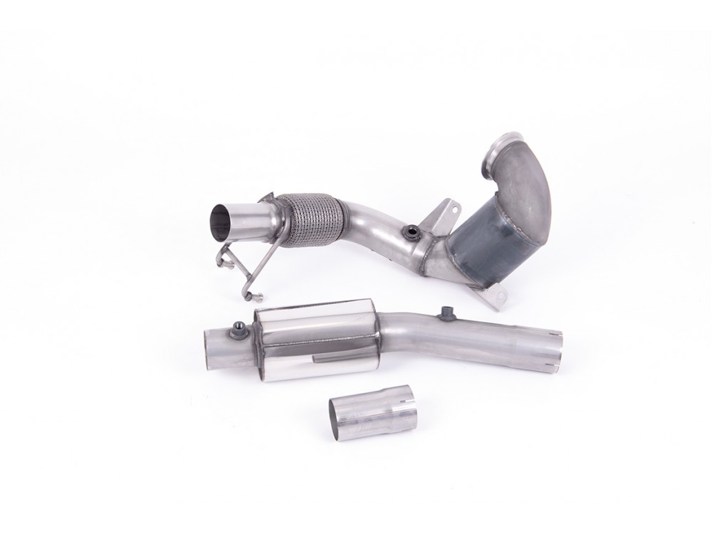 Downpipe mit Katalysator HJS in der Resonated-Version, speziell für den Audi A1 40 TFSI. Die Modifikation des vorderen Teils der Auspuffanlage hat einen erheblichen Einfluss auf die Verringerung des Rückdrucks, was sich positiv auf die Leistung des Fahrzeugs auswirkt. Das Element besteht aus Edelstahl. Entwickelt für die Verbindung mit der serienmäßigen Cat-back-Auspuffanlage von Milltek Sport.