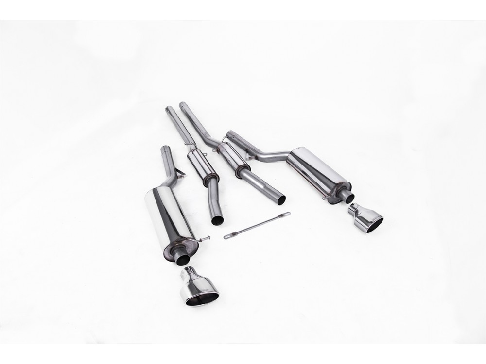 Die gesamte Anlage ist aus Edelstahl gefertigt und endet mit 2 ovalen Endrohren. Der Auspuff ist in der lauteren Version Non-resonated sowie in der leiseren Version Resonated erhältlich. Die Anlage ist kompatibel mit dem serienmäßigen Downpipe sowie mit dem Downpipe von Milltek Sport.