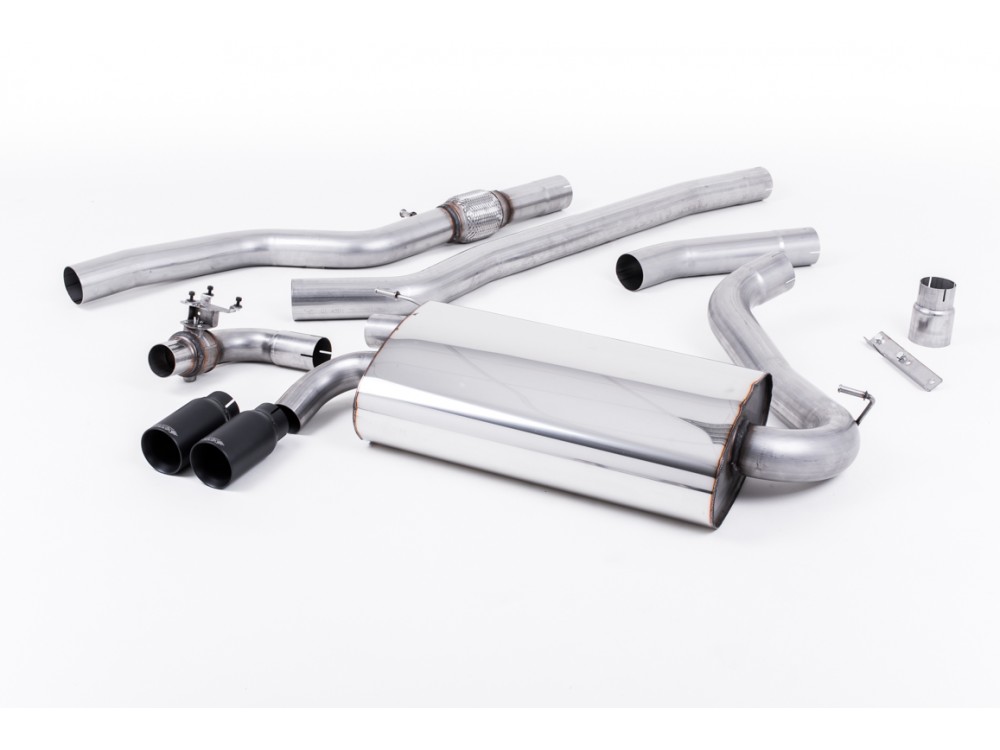 Die gesamte Anlage ist aus Edelstahl gefertigt und endet mit 2 Endrohren in mehreren Ausführungen zur Auswahl (siehe: "Verfügbare Optionen"). Die Anlage ist kompatibel mit dem serienmäßigen Downpipe sowie den Hochdurchfluss-Downpipes von Milltek Sport. Das Angebot betrifft die lautere Version Non-resonated. Es ist auch die Variante Resonated erhältlich.