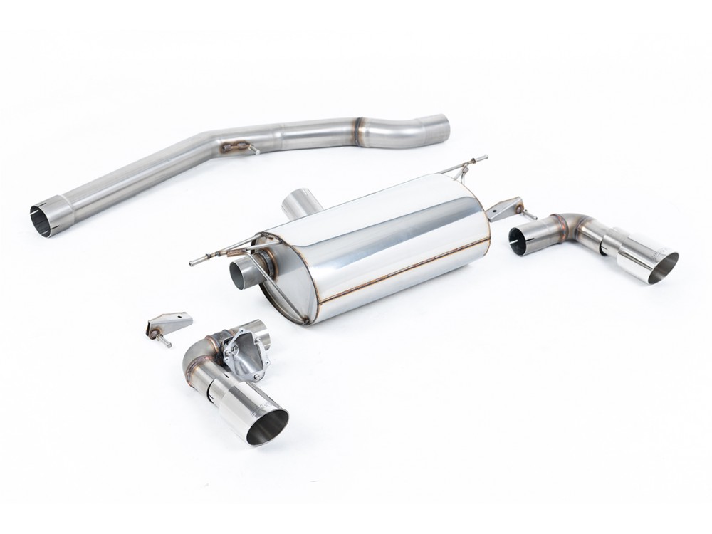 Sportauspuffanlage vom Typ GPF-back der Firma Milltek Sport, die für den BMW M140i F20/F21 LCI entwickelt wurde.