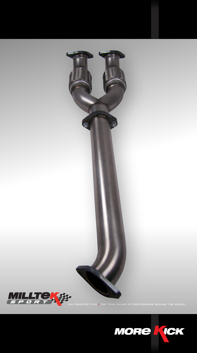 Aus rostfreiem Stahl gefertigt. Entwickelt, um mit dem serienmäßigen Abgassystem oder dem Milltek Sport Secondary Cat-back-Abgassystem verbunden zu werden.