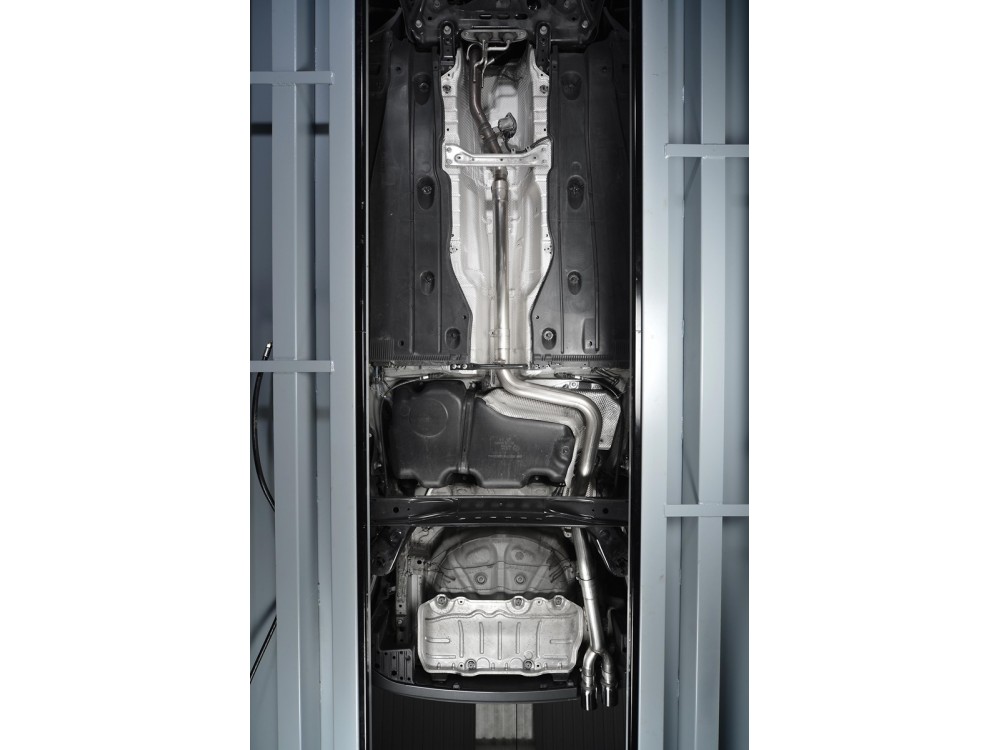 Die gesamte Anlage ist aus Edelstahl gefertigt und endet mit 2 Endrohren. Der Auspuff ist in der lauteren Non-resonated-Version sowie in der leiseren Resonated-Version erhältlich. Die Anlage ist mit dem serienmäßigen Downpipe kompatibel.
