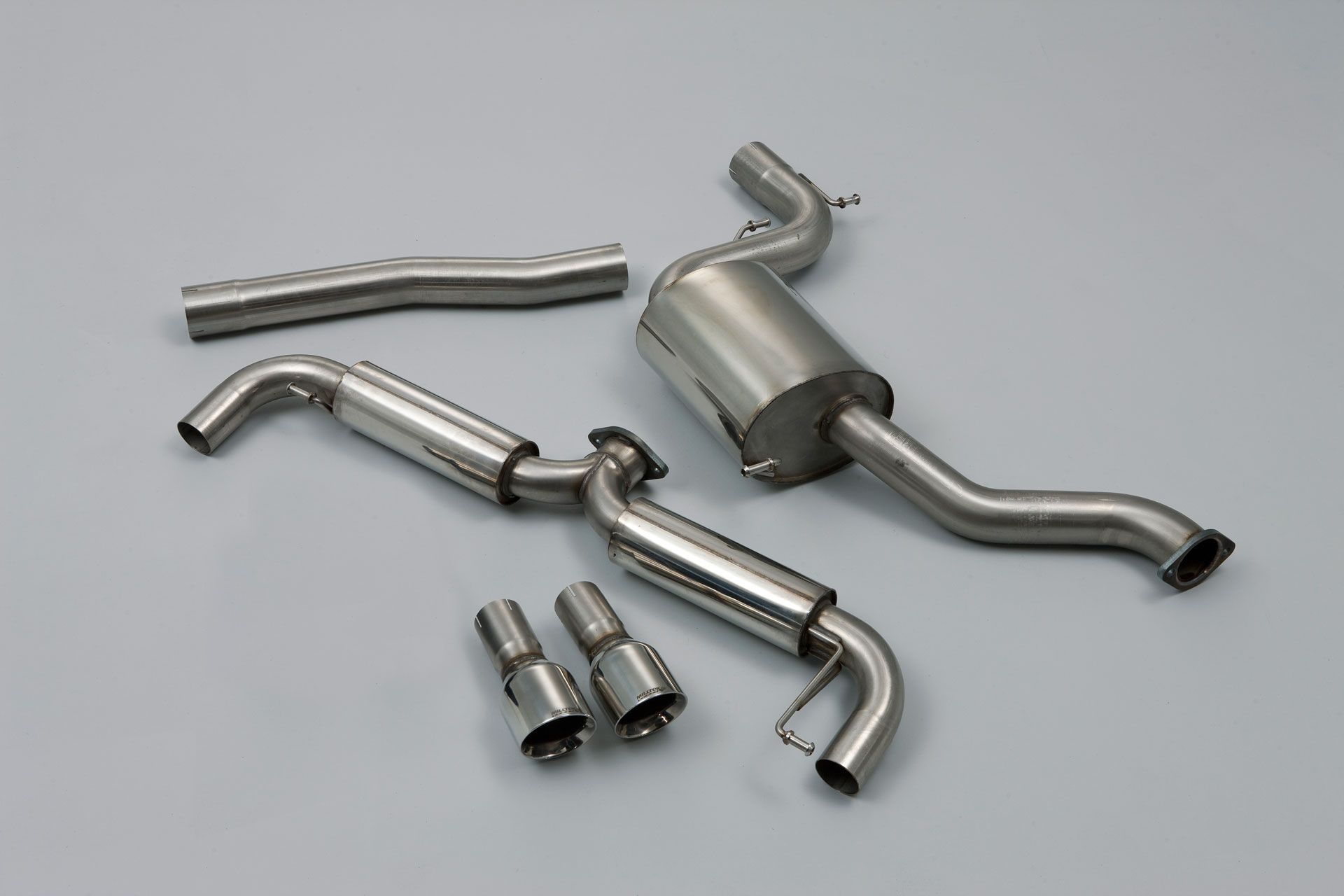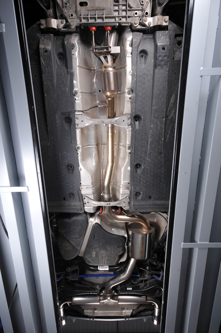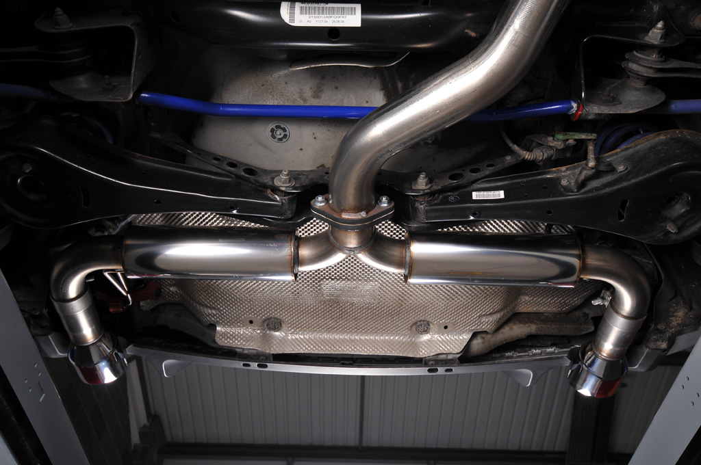 Sportauspuffanlage vom Typ Cat-back der Firma Milltek Sport, die für den VW Golf 6 GTI 2.0 TSI entwickelt wurde.