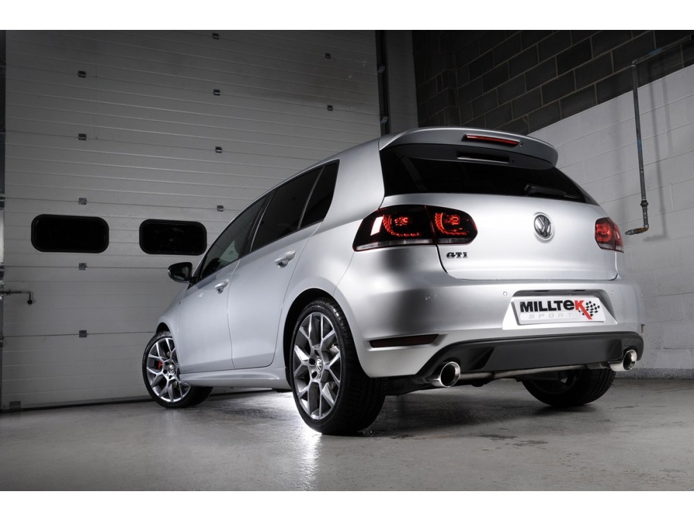 Sportauspuffanlage vom Typ Cat-back der Firma Milltek Sport, die für den VW Golf 6 GTI Edition 35 2.0 TFSI entwickelt wurde.