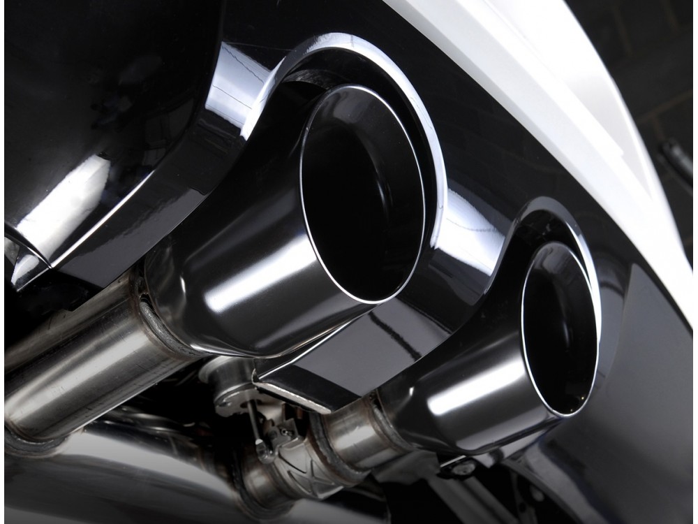 Die gesamte Anlage besteht aus Edelstahl und ist mit 2 Endrohren ausgestattet. Der Auspuff ist in der lauteren Non-resonated-Version sowie in der leiseren Resonated-Version erhältlich. Der Endschalldämpfer ist mit einer vom Bordcomputer gesteuerten Klappe ausgestattet.