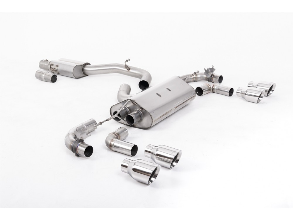 Das System ist kompatibel mit dem serienmäßigen Downpipe oder dem Downpipe von Milltek Sport. Alle Versionen verfügen über einen Endschalldämpfer, der mit einem vom Bordcomputer gesteuerten Klappenmechanismus ausgestattet ist. Für die Montage dieses Auspuffs sind keine zusätzlichen Modifikationen am Fahrzeug erforderlich.