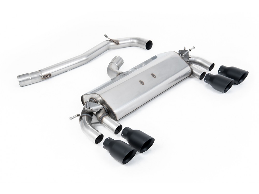 Die Anlage ist kompatibel mit dem serienmäßigen Downpipe oder mit dem Downpipe von Milltek Sport. Alle Versionen verfügen über einen Endschalldämpfer, der mit einem vom Bordcomputer gesteuerten Klappenmechanismus ausgestattet ist. Für die Montage dieses Auspuffs sind keine zusätzlichen Modifikationen am Fahrzeug erforderlich. Optional kann das durchgängige Mittelrohr durch den Road+-Mittel- schalldämpfer (Version zwischen Non-resonated und Resonated) ersetzt werden.