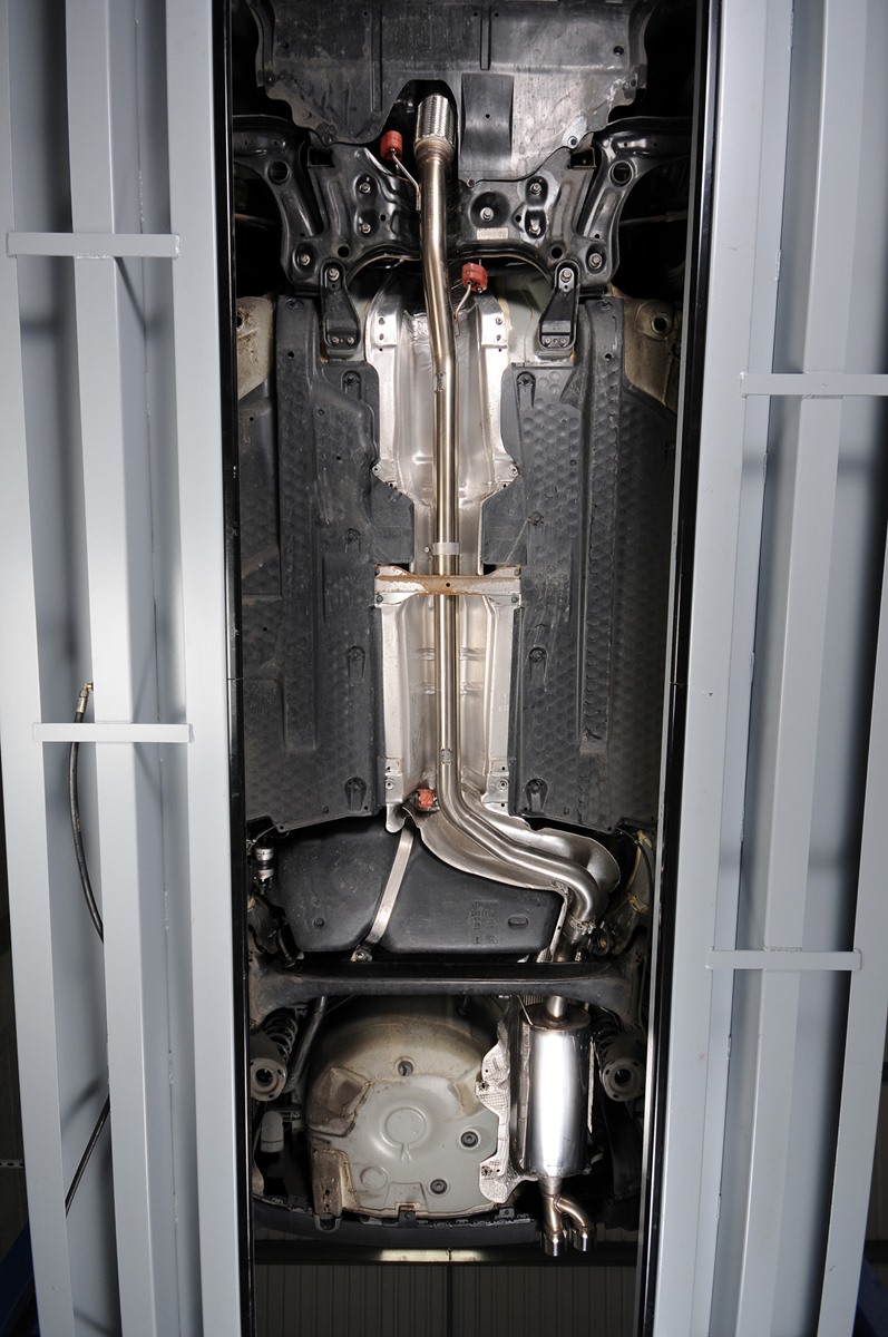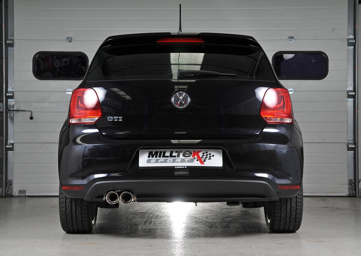 Sportauspuffanlage vom Typ Cat-back der Firma Milltek Sport, die für den VW Polo GTI 1.4 TSI entwickelt wurde.