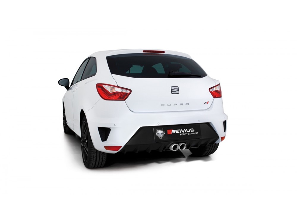 Sportauspuffanlage vom Typ Cat-back von Remus, die für den Seat Ibiza IV Cupra 1.8 TSI entwickelt wurde.